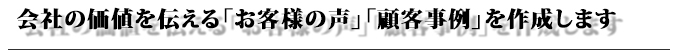 事例は、単によかったことではなく、「買う前の課題」⇒「他社比較」⇒「決定要因」⇒「使ってみた感想」の流れで、事例を見る人の購買心理の沿ったライティングを行いますので、価値を高める効果の高いコンテンツになります。
